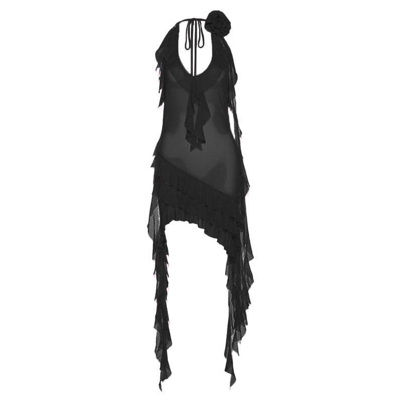 Sheer mesh see through v neck knotted irregular long sleeve skirt set